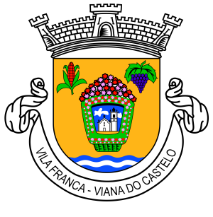 Brasão: escudo de ouro, um cesto engalanado de rosas, tudo de sua cor, entre uma espiga de vermelho e um cacho de uvas de púrpura, ambos folhados de verde; campanha de burela ondada de azul e prata. Coroa mural de três torres. Listel branco, com a legenda a negro, em maiúsculas: VILA FRANCA -VIANA DO CASTELO.